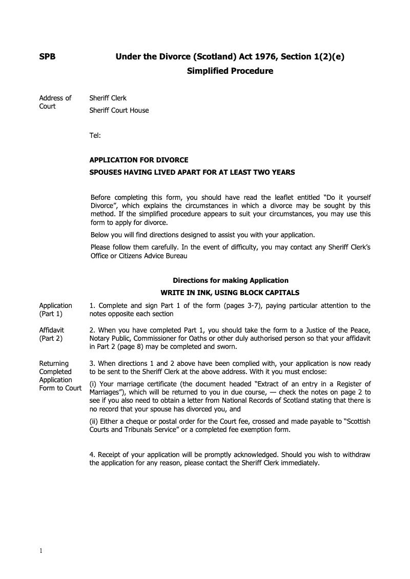 Under the Divorce (Scotland) Act 1976, Section 1(2)(e) Simplified Procedure - Divorce 2 year sepration