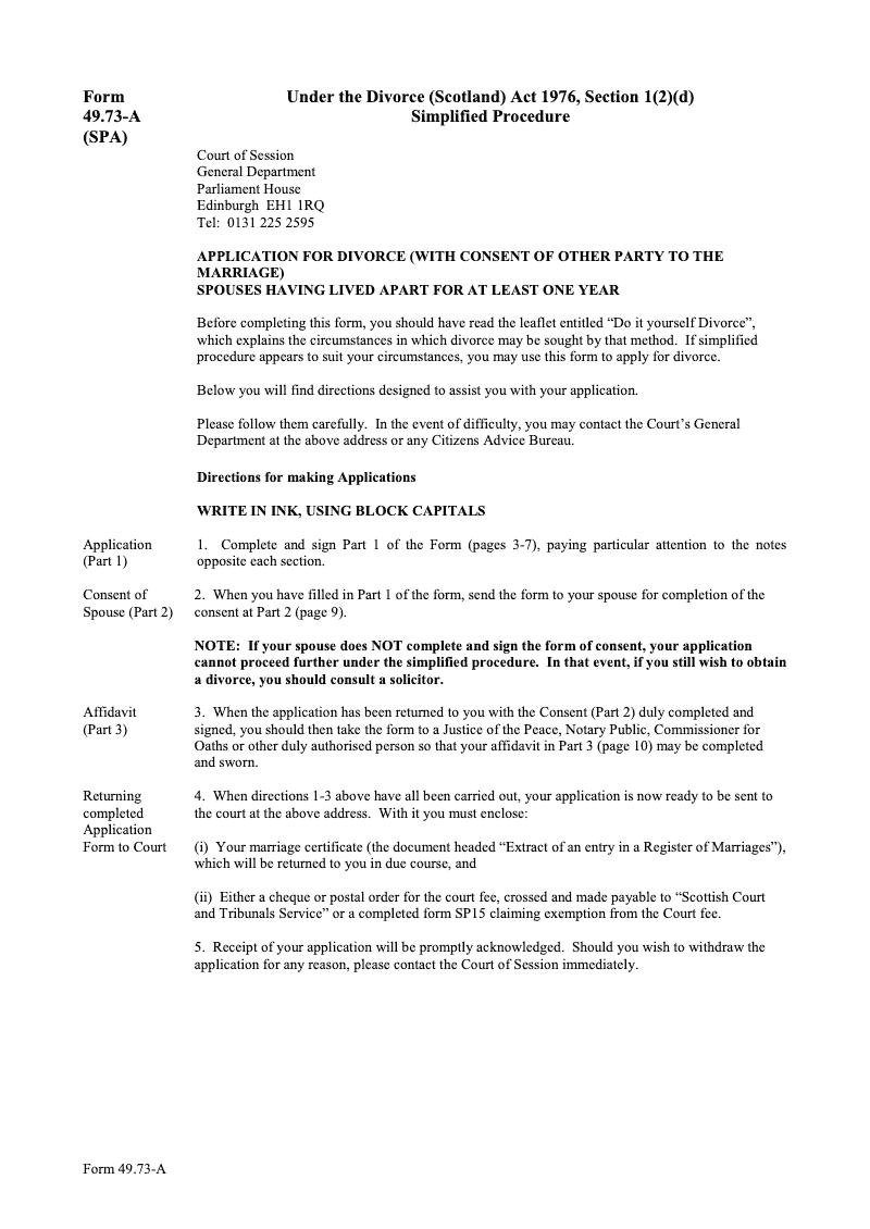 Under the Divorce (Scotland) Act 1976, Section 1(2)(d) - Simplified Procedure (SPA)