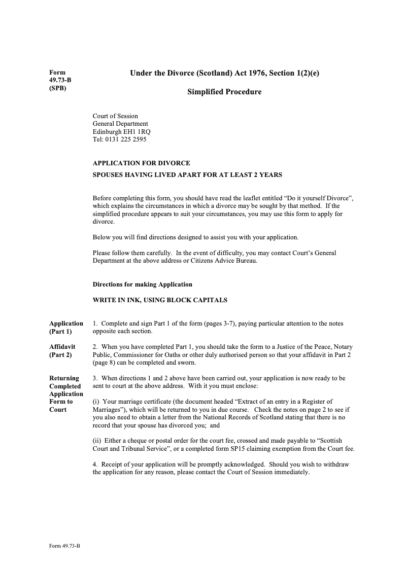 Under the Divorce (Scotland) Act 1976, Section 1(2)(e) - Simplified Procedure (SPB)