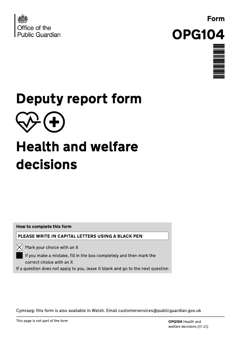 Deputy report form - Health and welfare decisions