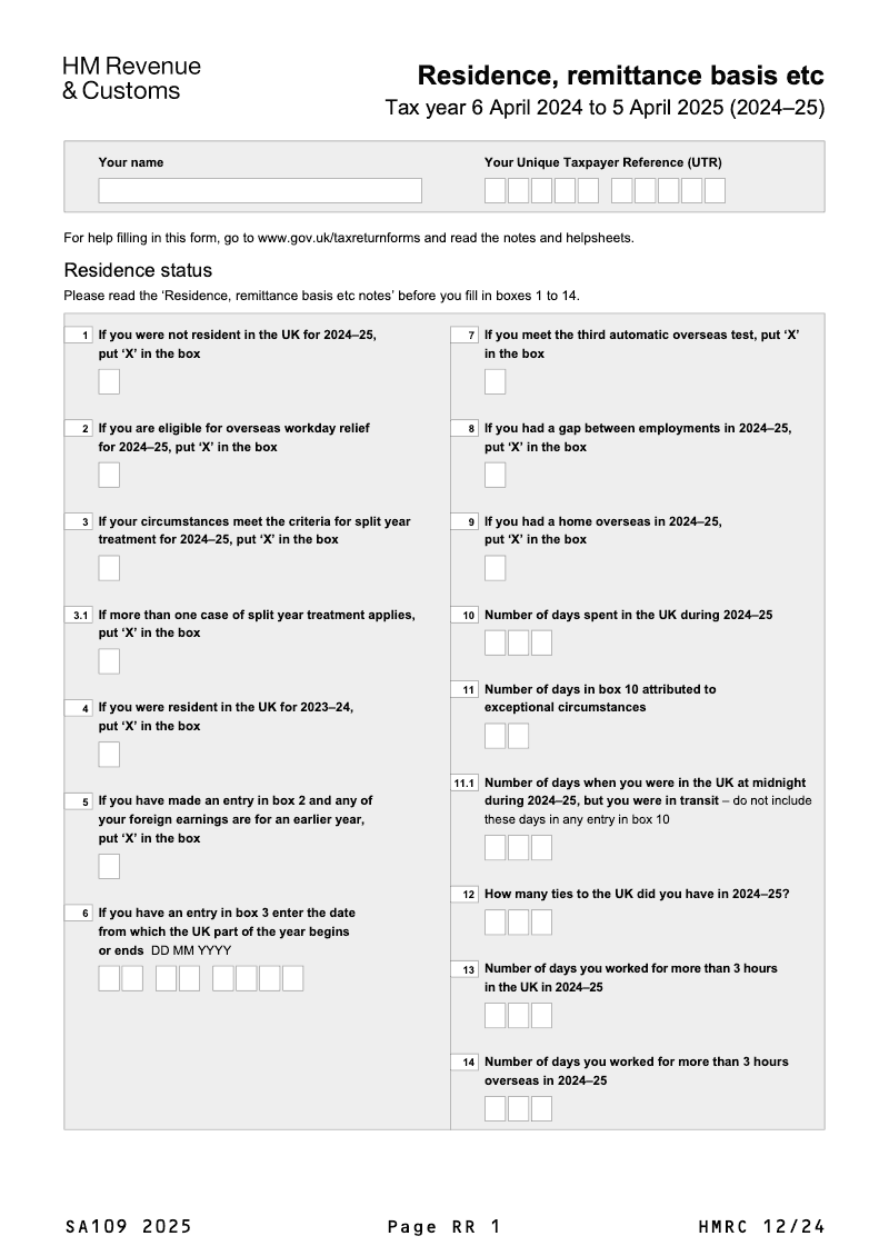 Residence and foreign income and gains (FIG) regime etc - Tax year 6 April 2024 to 5 April 2025 (2024-25)