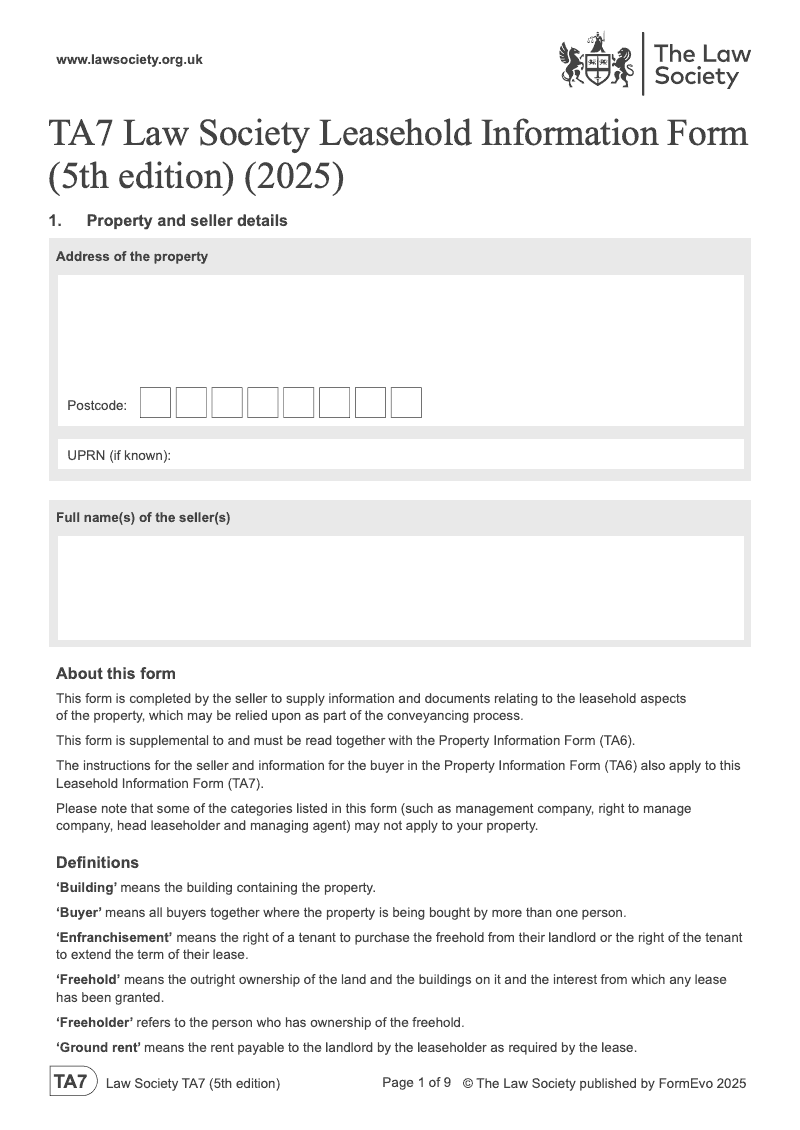 Leasehold Information Form (5th edition) (2025) - electronic signature available